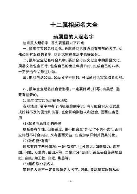 给鼠年男孩取名是一件大事。我们不仅要考虑美丽的含义,还要遵循传统的禁忌,避免不幸的名字。以下是命名时应注意的一些禁忌: