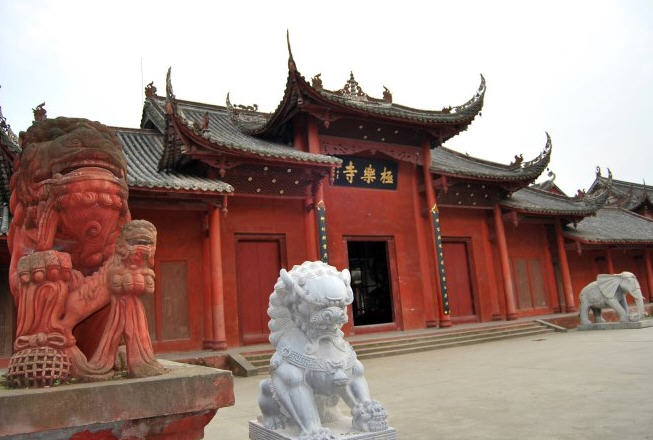 东坡区华藏寺位于四川省眉山市东坡区松江镇光荣村,在成乐高速公路上也可以看到丛林掩映中的寺院殿宇。华藏寺是不是建于唐朝,尚无法考证,但据《眉山县志》载:“华藏寺,(眉山县)治南三十里。上有苏东坡读书台古迹。”说明至少在北宋时,华藏寺确已存在,但后来被毁。从松江进站路往修文方向走约500米,道路左边有通往华藏寺的指路牌,转折穿过横跨成乐高速公路的天桥,就到了华藏寺。