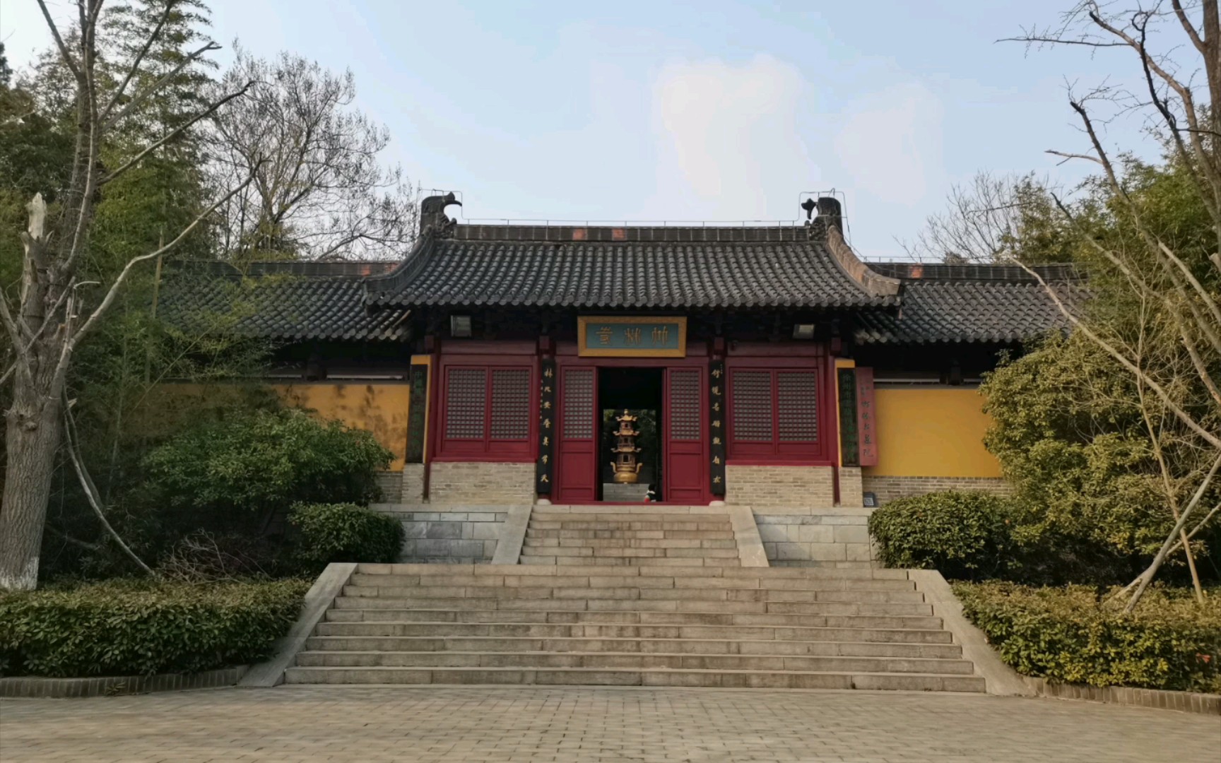 江苏•徐州•云龙•竹林寺初名青园寺,始建于东晋永和年间(公元345~356年),净检法师应邀驻锡青园寺,晋穆帝“敕改”为竹林寺。据南朝梁朝宝唱所撰《比丘尼传》记,中国第一个依戒律削发受戒的比丘尼是洛阳竹林寺的净检。绕行到景区南门,有石墩拦住,不能开车进入。当时有点后悔了,因为北牌坊离大雄宝殿最近的。又遇到一位贵人告知,走“锻压西巷”可以开车上山。