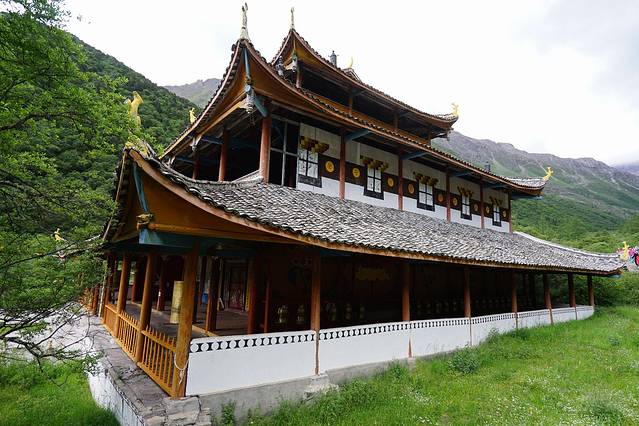 位于岷山主峰雪宝顶,涪江源头——富源桥旁,是一条长7.5公里,宽1.5公里的缓坡谷地。沟上覆盖着乳黄色的岩石,远远望去像一条密林峡谷中的黄龙,黄龙沟的名字由此而来。明代(公元1368-1644年),这里建有黄龙寺,供奉黄龙。